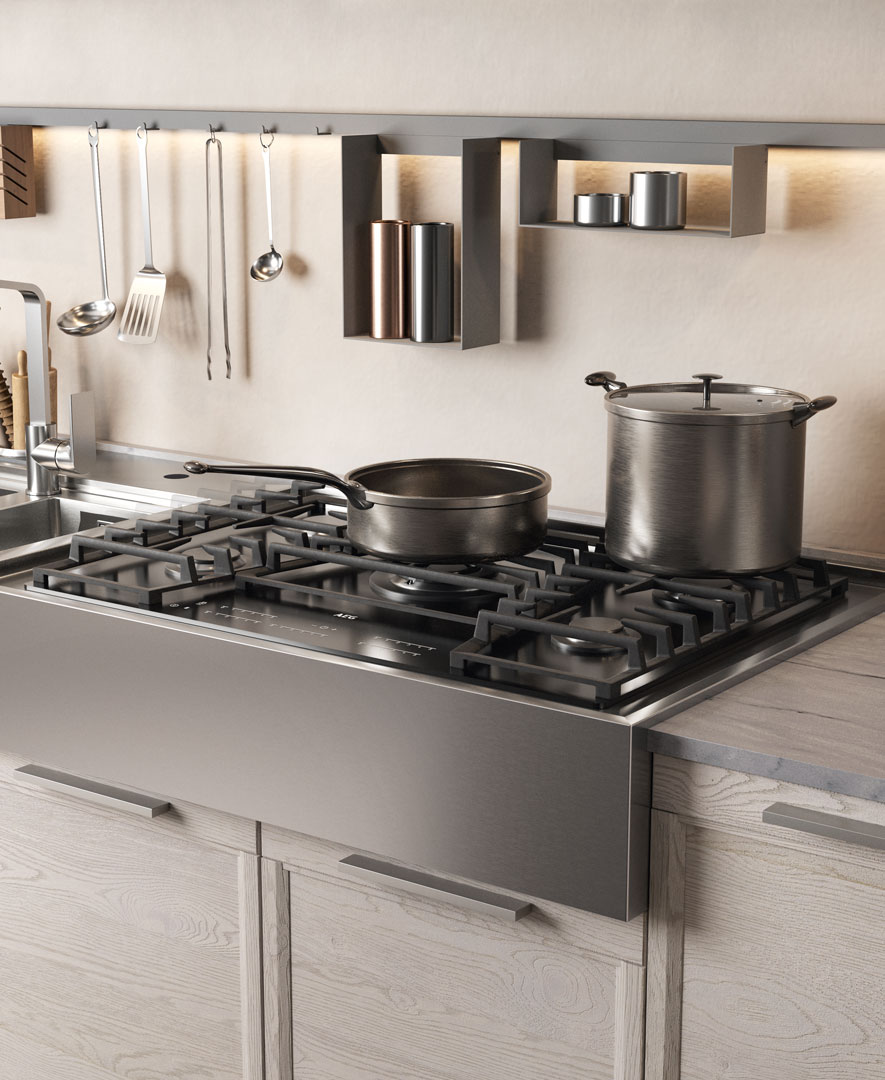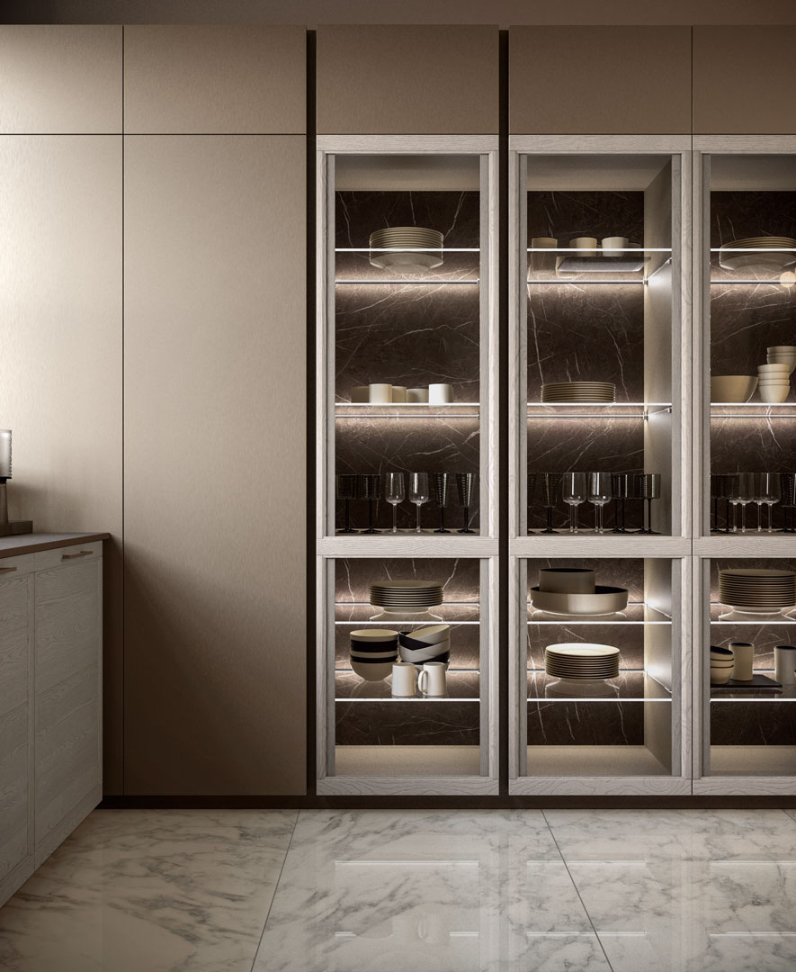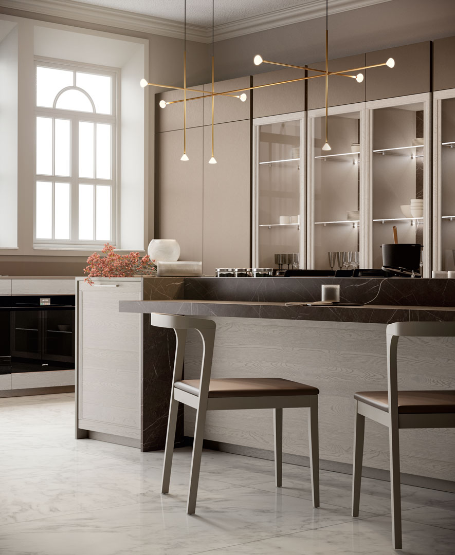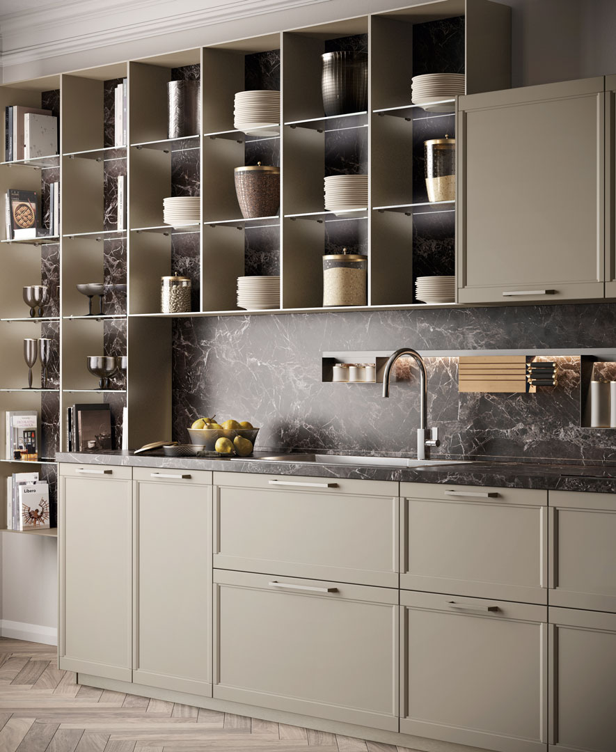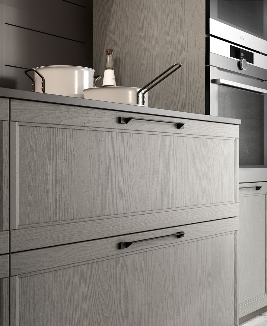 Flavour reinterpreta la cucina classica con linee armoniose, materiali di qualità e finiture dall’allure tradizionale. Un modello pensato per chi desidera un ambiente accogliente, elegante e ricco di dettagli che fanno la differenza.