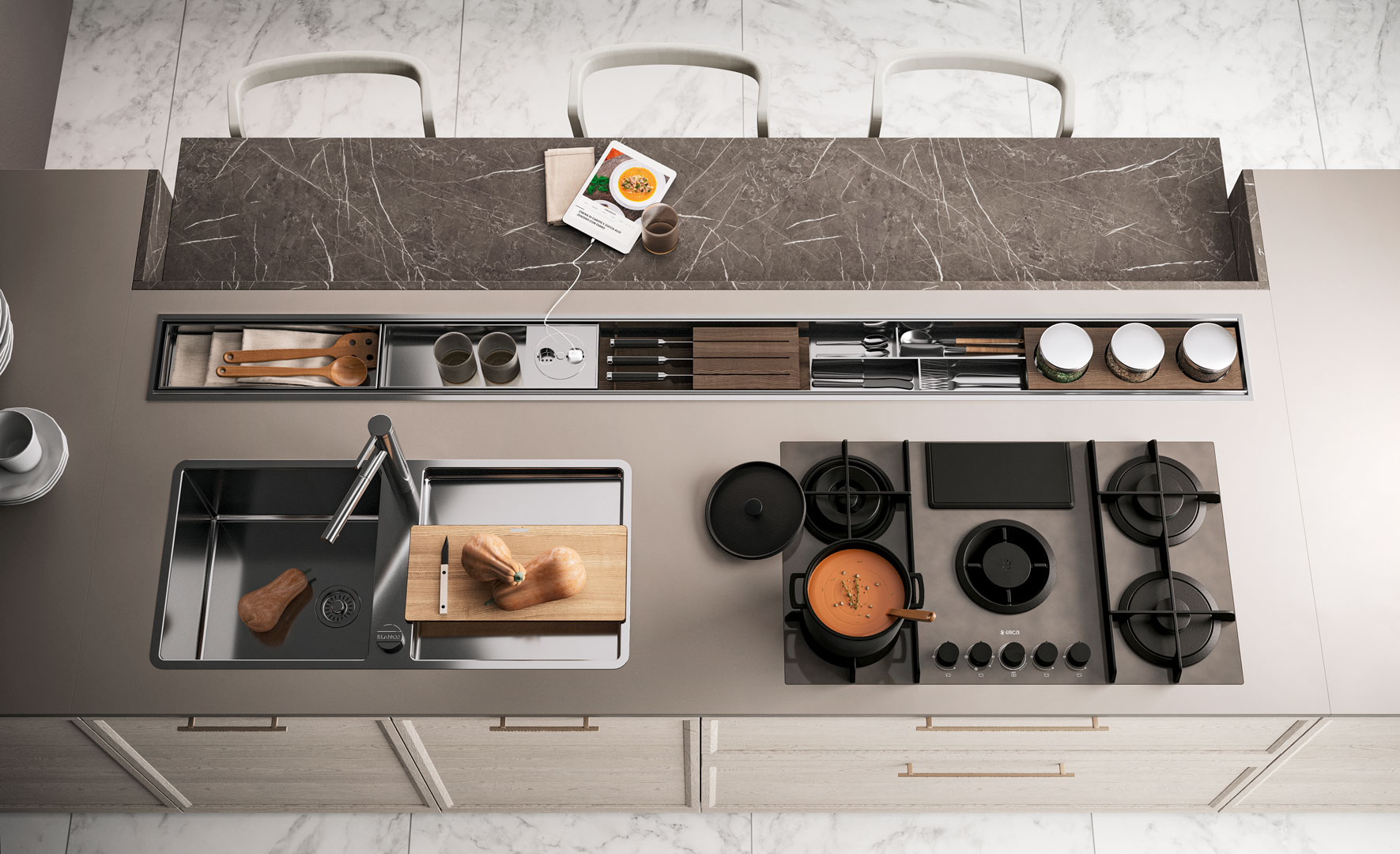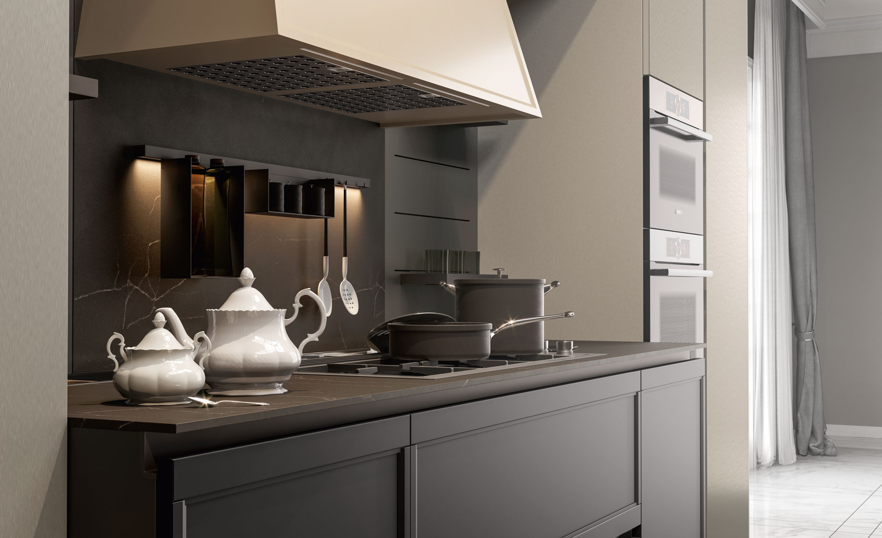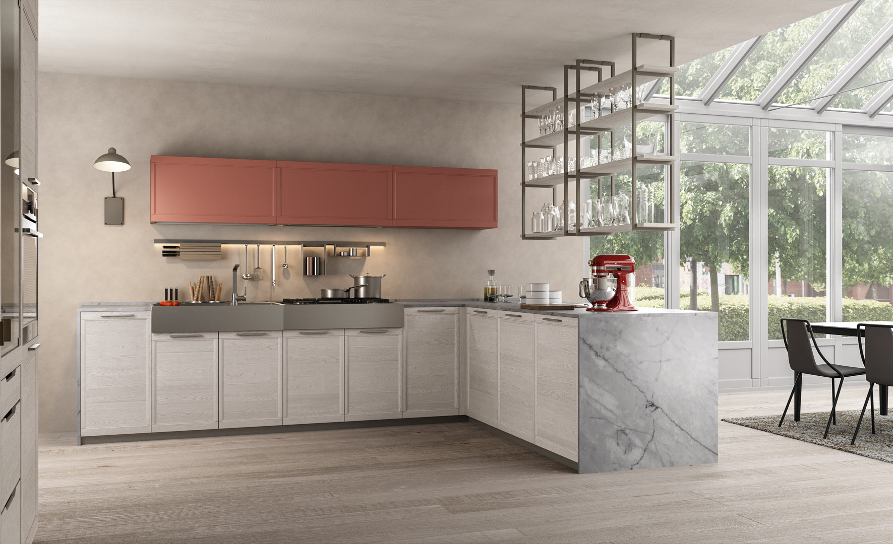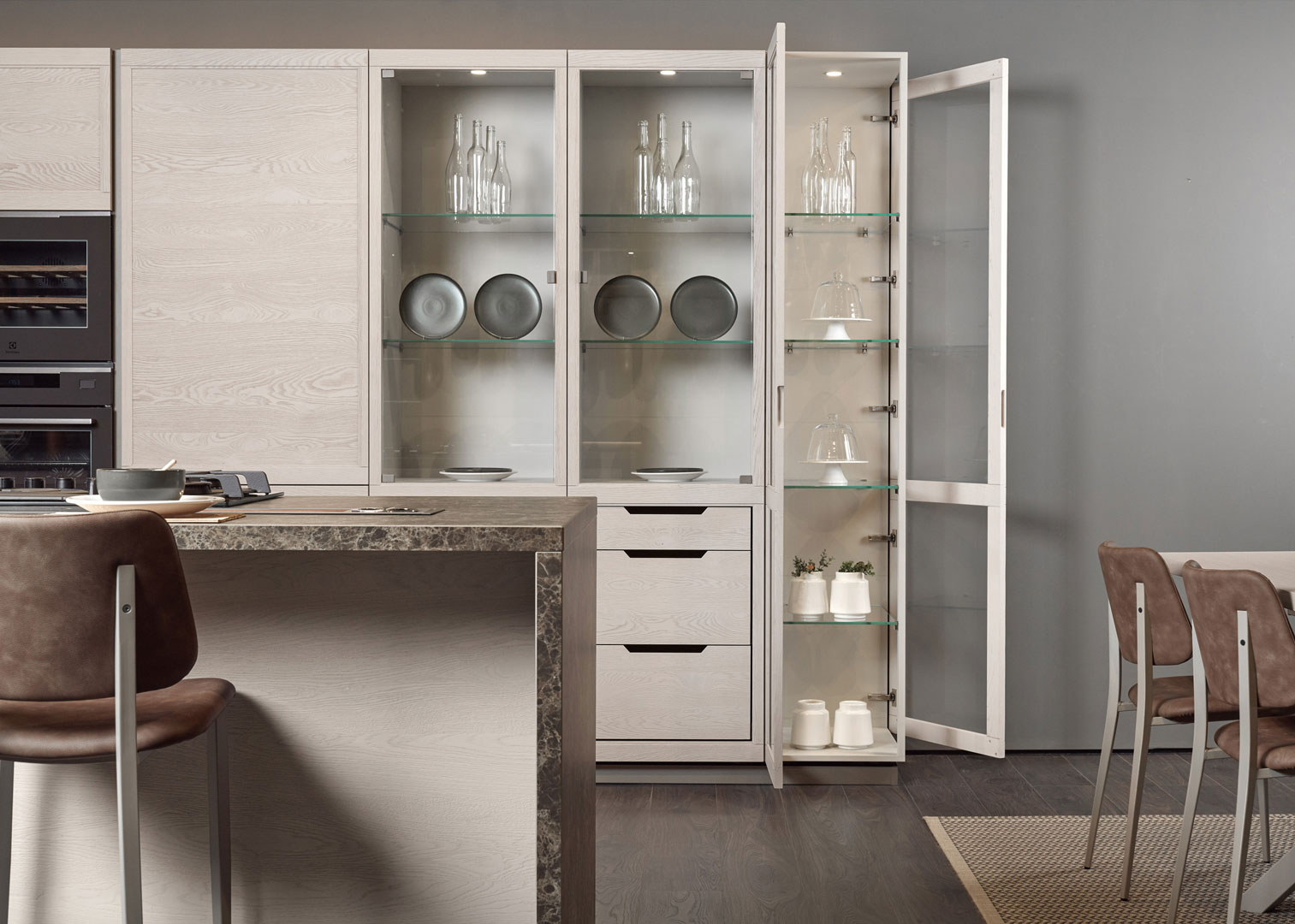 Flavour reinterpreta la cucina classica con linee armoniose, materiali di qualità e finiture dall’allure tradizionale. Un modello pensato per chi desidera un ambiente accogliente, elegante e ricco di dettagli che fanno la differenza.